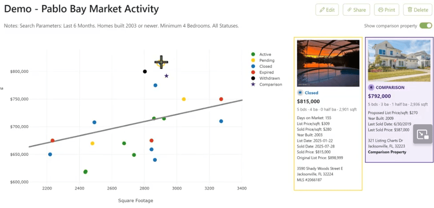 Bring easy, professional, interactive pricing charts to your next listing appointment.
